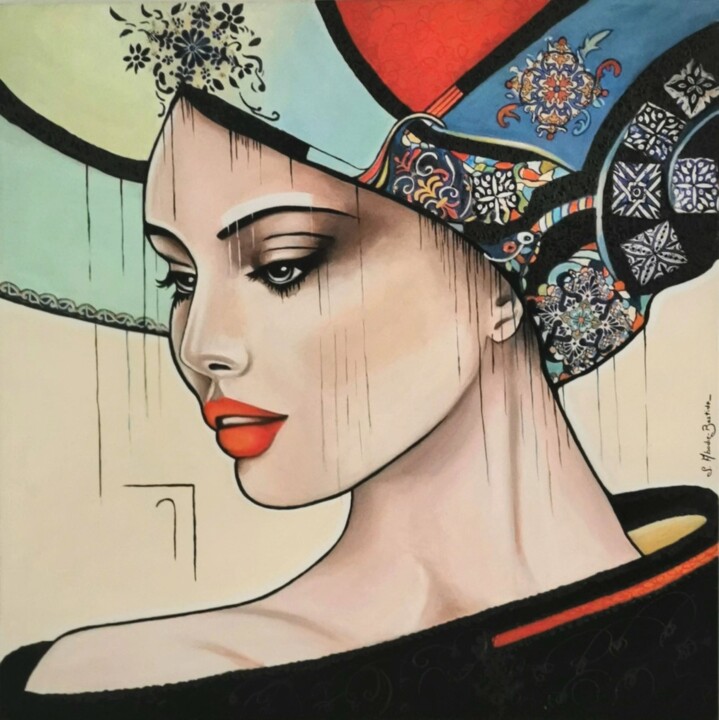 Passée par plusieurs périodes, aujourd’hui le choix des médiums, la peinture, les papiers délicats chargés de couleurs, les reliefs, et le sujet de la Femme sont une évidence.